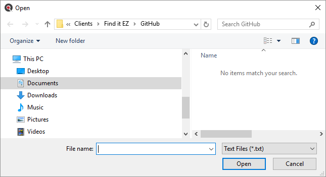 In the Exclude files, folders and archives ... section of the Mask Filters tab, click on the button. An Open dialog will appear.