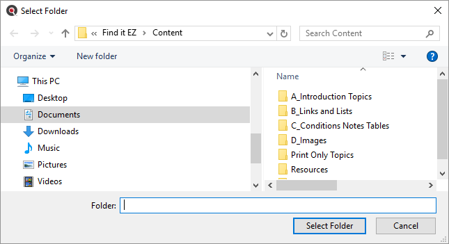 button to the right of the Directory field. A Select Folder dialog will appear. See example below: