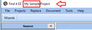 The name of the currently viewed project is shown in the top, left corner of the main screen Title Bar. See below: